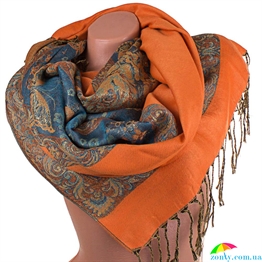 Такой палантин - ценная, особенная вещь, он богато украшен орнаментом и красивым, мастерски исполненным на ткани рисунком. Аксессуар оранжевого цвета по краям дает отдохновение в виде композиции из цветов и порхающих бабочек, вводит в образ волшебный бирюзовый цвет. Бахрома тоже дает разнообразие оттенков, а золотистый желтый оттенок, блестящий люрексовыми нитями, делает общую картину живее и выразительнее. При этом активно выполняется главная роль изделия - вносить в каждый наряд нотки оптимизма и жизнерадостности. Палантин из пашмины способствует этому еще и теплом мягкой материи, высоким качеством. Торговая марка ETERNO дает Вам возможность быть неподражаемой, а наш интернет-магазин - купить понравившийся аксессуар по выгодной цене.