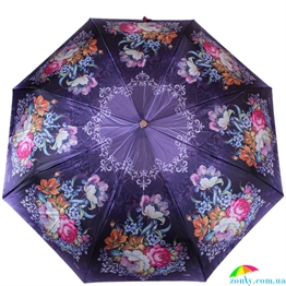 Зонт женский автомат ТРИ СЛОНА RE-E-139G-3 фиолетовый, цветы