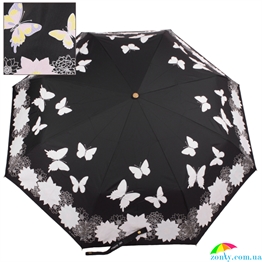 Зонт женский автомат с эффектом "хамелеон" ТРИ СЛОНА RE-E-220-10 черный, полный автомат, цветы
