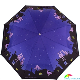 Такой зонт даже среди белого дня вызовет улыбки окружающих, повышая настроение всем подряд, а уж в темное время суток будет настоящим хитом – актуальным, оригинальным, настраивающим на романтичный лад. Пронзительное сине-звездное небо на куполе, черное обрамление краев силуэтами домовых крыш с желтыми огоньками в окнах и главные персонажи – грациозные кошки, явно любующиеся Луной, в роли которой выступает центр купола, - не зонт, а целый рассказ, своеобразный образ, особый настрой. И пусть идет дождь, под таким аксессуаром можно его просто не замечать, тем более, что производитель позаботился о техническом совершенстве изделия, снабдив его крепким стальным каркасом, антиветровыми спицами, эргономичной ручкой, увеличенных куполом, отлаженным полуавтоматическим механизмом. Купить брендовый зонт ТМ ZEST по выгодной цене Вам предлагает наш магазин.