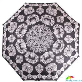 Разрабатывая этот зонт, дизайнеры создали для него удлиненную ручку удобной и эргономичной формы, которая слегка снижает компактность изделия. Это невозможно назвать недостатком модели, ведь в сложенном виде длинна изделия все равно не превышает размеры альбомного листа. При этом дизайн аксессуара поражает своей утонченностью и изобретательностью. На непроницаемо черном фоне по-настоящему сверкают тончайшие белые кружева, напоминающие волшебный раскрывшийся цветок. Активность рисунка привлекает наше внимание к белым деталям и аксессуар не воспринимается мрачным, несмотря на темный фон. Крепкая система спиц, снабженных специальными деталями, которые предотвращают поломку, дополняет ансамбль. Это делает зонт, купить который в нашем магазине можно по выгодной цене, незаменимым помощником.