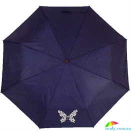 Этот темно-синий зонт далек от того, чтобы соответствовать пасмурной погоде и свинцовым краскам ненастного неба. Создаваемый образ играет и движется, словно стремясь вступить в соревнование с быстрыми каплями дождя, купол украшен мельчайшими черточками-штрихами, которые кружатся в такт ветру и создают приятную рябь светлого оттенка. Главная же роль, конечно, принадлежит белой «цветочной» бабочке – порождению фантазии художника. Она служит контрастным, не ярким, но интересным нюансом, который и определяет стилевую направленность аксессуара. Благодаря этой детали в дизайне зонт приобретает романтичные черты, легкость при таком темном фоне. Зонт-полуавтомат оснащен деревянной ручкой и антиветровыми спицами, которые крепятся на стальном стержне, а купить его можно по комфортной цене в нашем магазине.